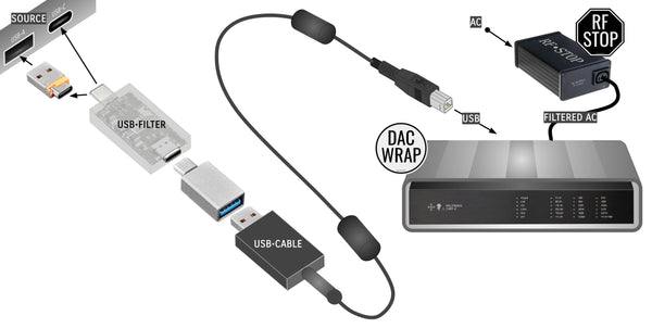 The combination of DAC•WRAP (for magnetic fields), USB•FILTER & USB•CABLE (for USB signal) and RF•STOP (for AC power) dramatically improves Cyan2 transparency.