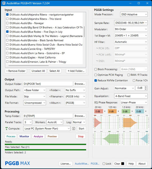 Reimagine your DAC with PGGB•IT!—a professional Windows application for offline upsampling using renowned PGGB technology. PGGB•IT! works with local music files, processing them to high resolution WAV, FLAC, DSF or WV format compatible with dedicated servers and playback software. If you listen exclusively to streamed music (as from Tidal or Qobuz) you will need to download versions of your music to take advantage of PGGB•IT!. Offline upsampling is beneficial for sound quality—improved reconstruction accuracy and, versus real-time upsampling, reduced RF noise in the signal chain. AudioWise is a Licensee Partner of remastero (www.remastero.com) and PGGB•IT! is updated with the latest PGGB core software libraries to ensure quality and performance.